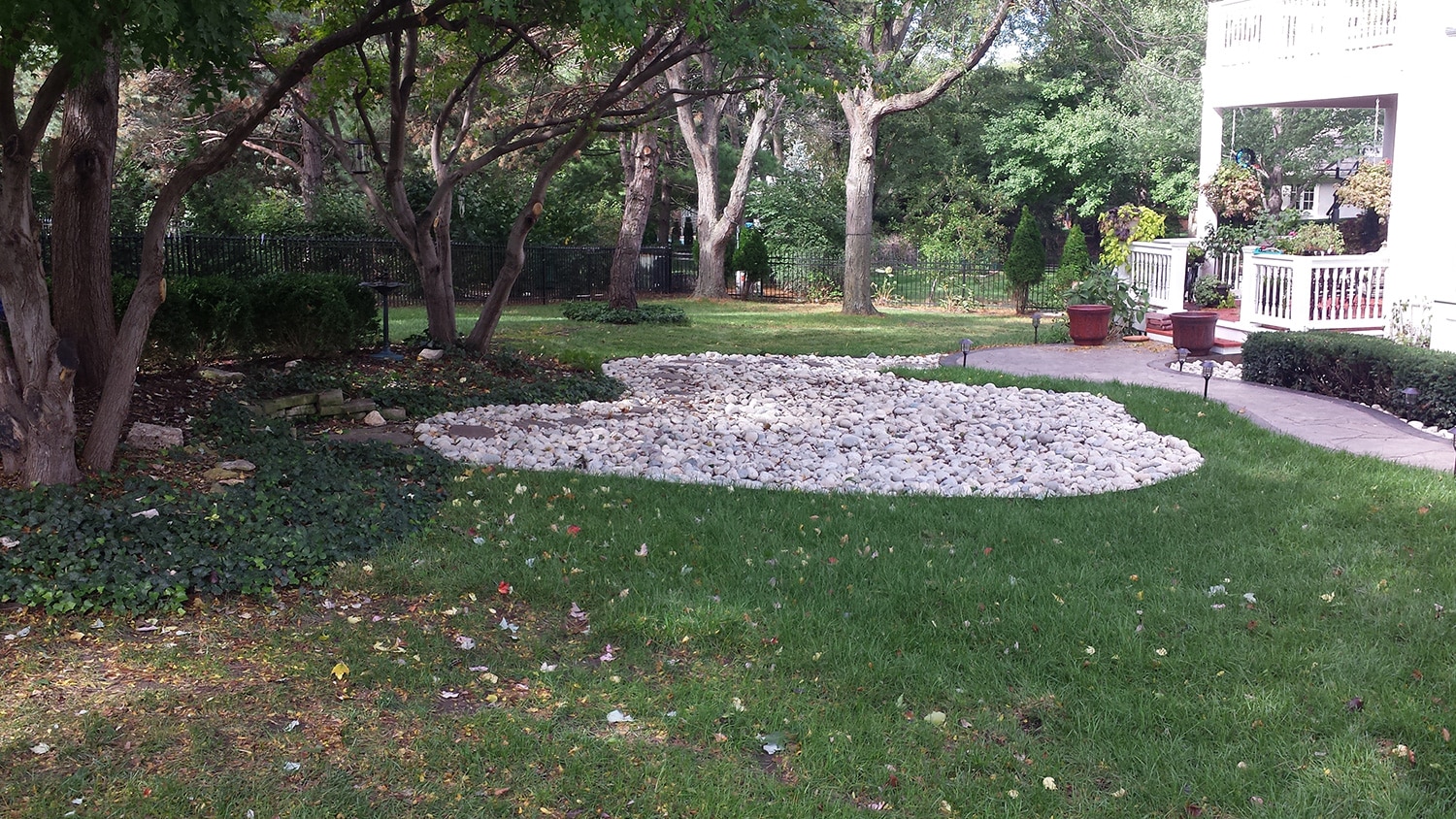 Since putting in the rock rain garden, the homeowner has not had any issues with standing water.