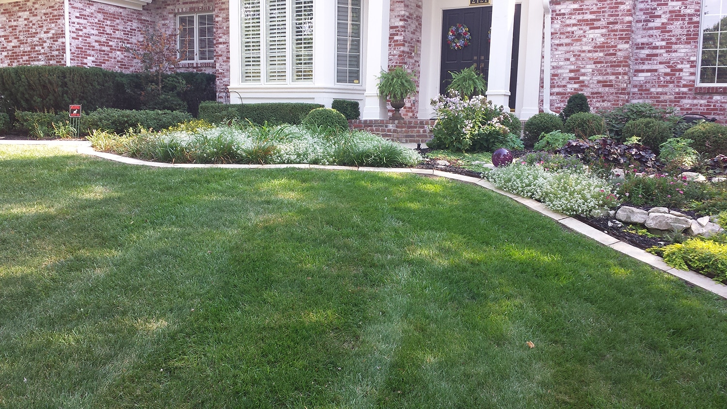The homeowners had tried tackling their yard themselves, but were having no success. The homeowners were trying to improve the curb appeal of their house and fix stormwater issues that were in the yard. The design includes mix of native and naturalize plants that added color and framed views. Rain gardens and regrading of the yard have solved the stormwater issues. A rock rain garden was chosen in the backyard to prevent the homeowners’ dogs from getting into the garden and getting muddy during rain events.